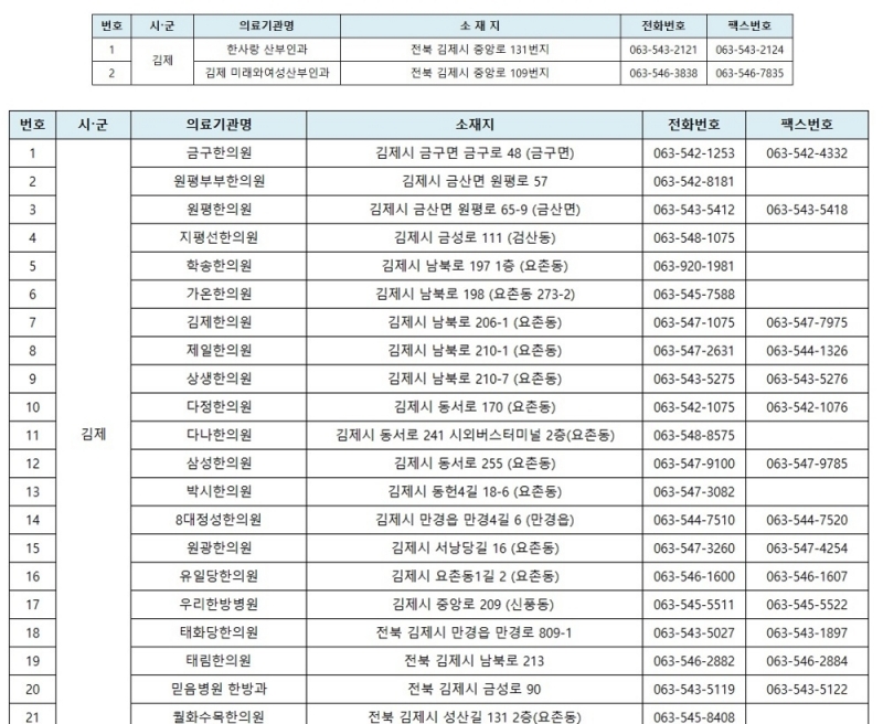 의료기관은 전라북도 및 김제내 지정의료기관 해당사업참여를 신청한 의료기관(한의원,산부인과)에서 산후건강관리쿠폰 사용 및 진료가 가능하다.