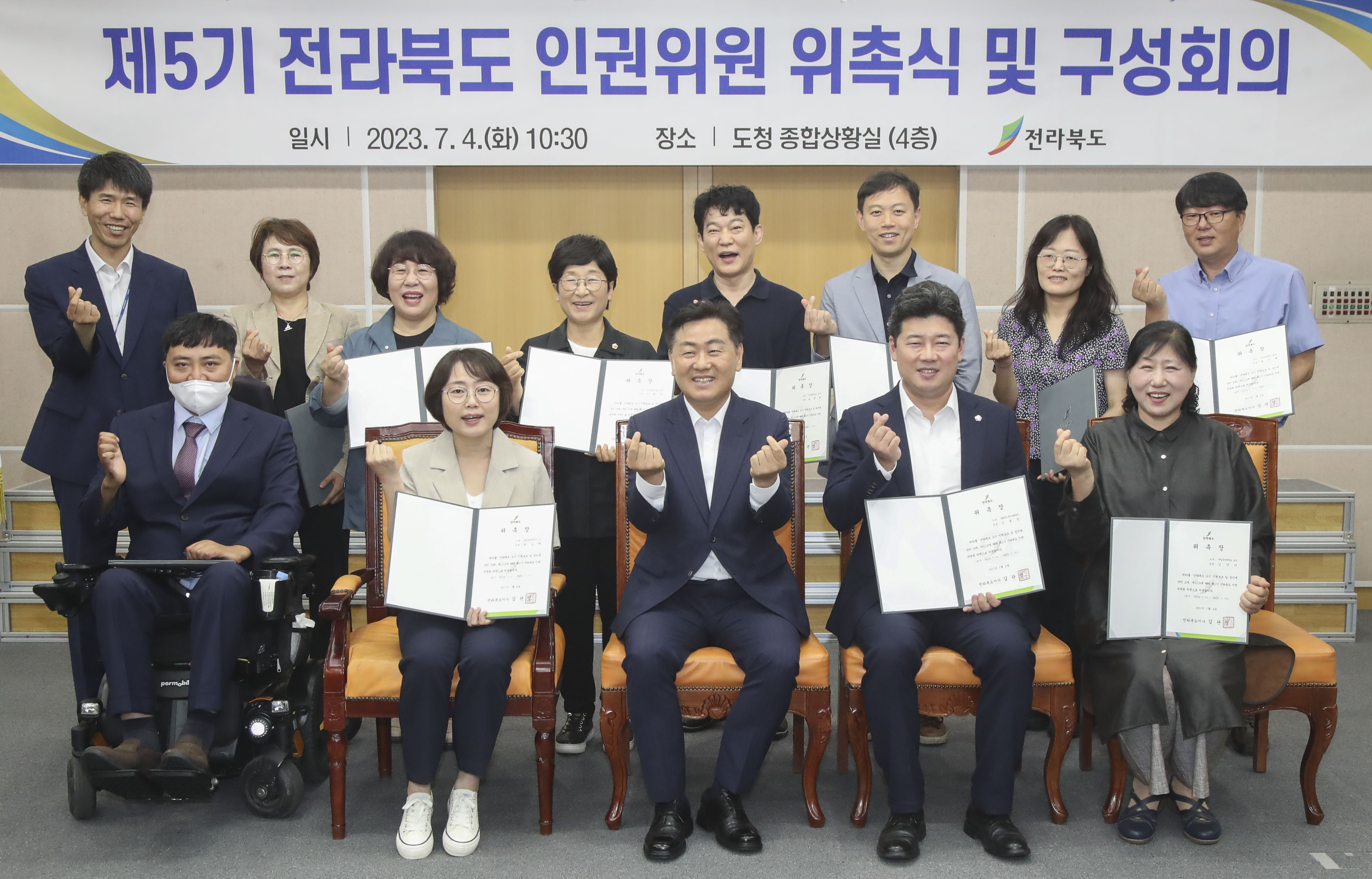 이번에 위촉된 5기 인권위원은 공개모집 후 심사를 통해 선정된 신규위원 8명, 전북도의회 추천 1명, 연임 위원 3명을 포함한 12명이며, 당연직 위원 2명을 포함해 총 14명으로 구성됐다.
