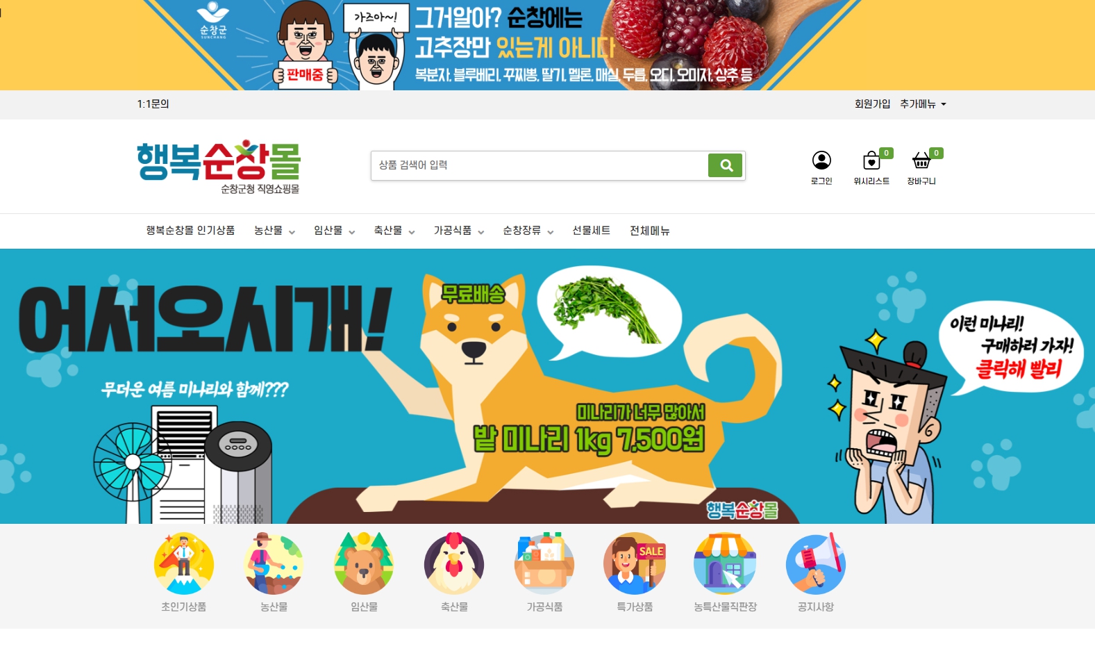 쇼핑몰 문의 사항은 순창군 농산물유통팀(063-650-5182)으로 문의하면 된다.