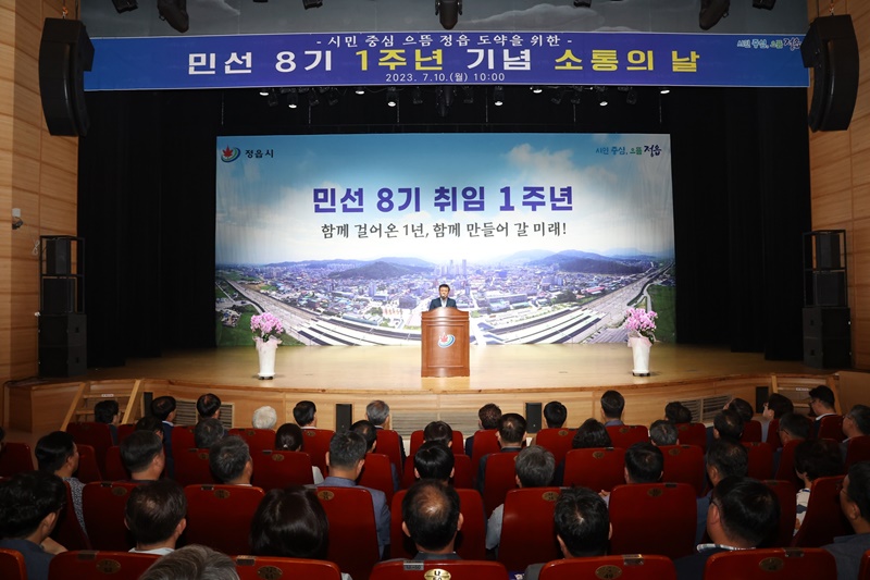 [정읍=뉴전북] 정읍시는 10일 민선 8기 취임 1주년을 맞이해 정읍사예술회관에서 민선 8기 취임 1주년 기념 소통의 날 행사를 개최했다.