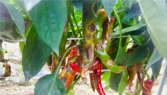 주로 고추 열매에 발생하며 연녹색의 작은 병반이 점차 둥근 겹무늬로 확대돼 검게 썩어 들어가 수량 손실에 큰 피해를 주는 병해이다.