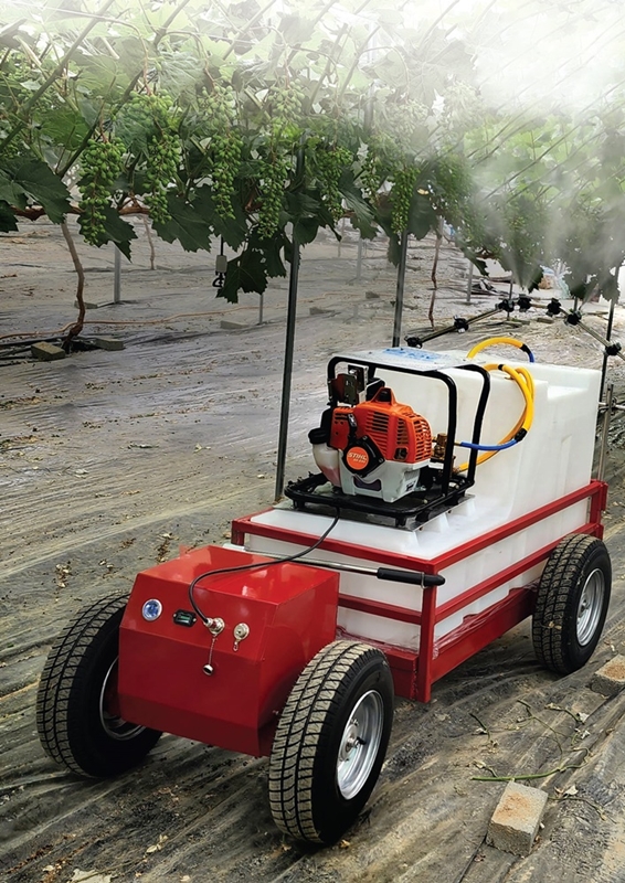 이번 포도과원에 보급된 방제기(5대)는 무선 원격조종 소형 방제기로, 좁은 시설에서 간단한 리모컨 조작을 통해 원격운전이 가능하기 때문에 고령 농업인 및 여성 농업인도 쉽게 이용이 가능하며, 농업인을 농약 노출 위험으로부터 보호할 수 있다.