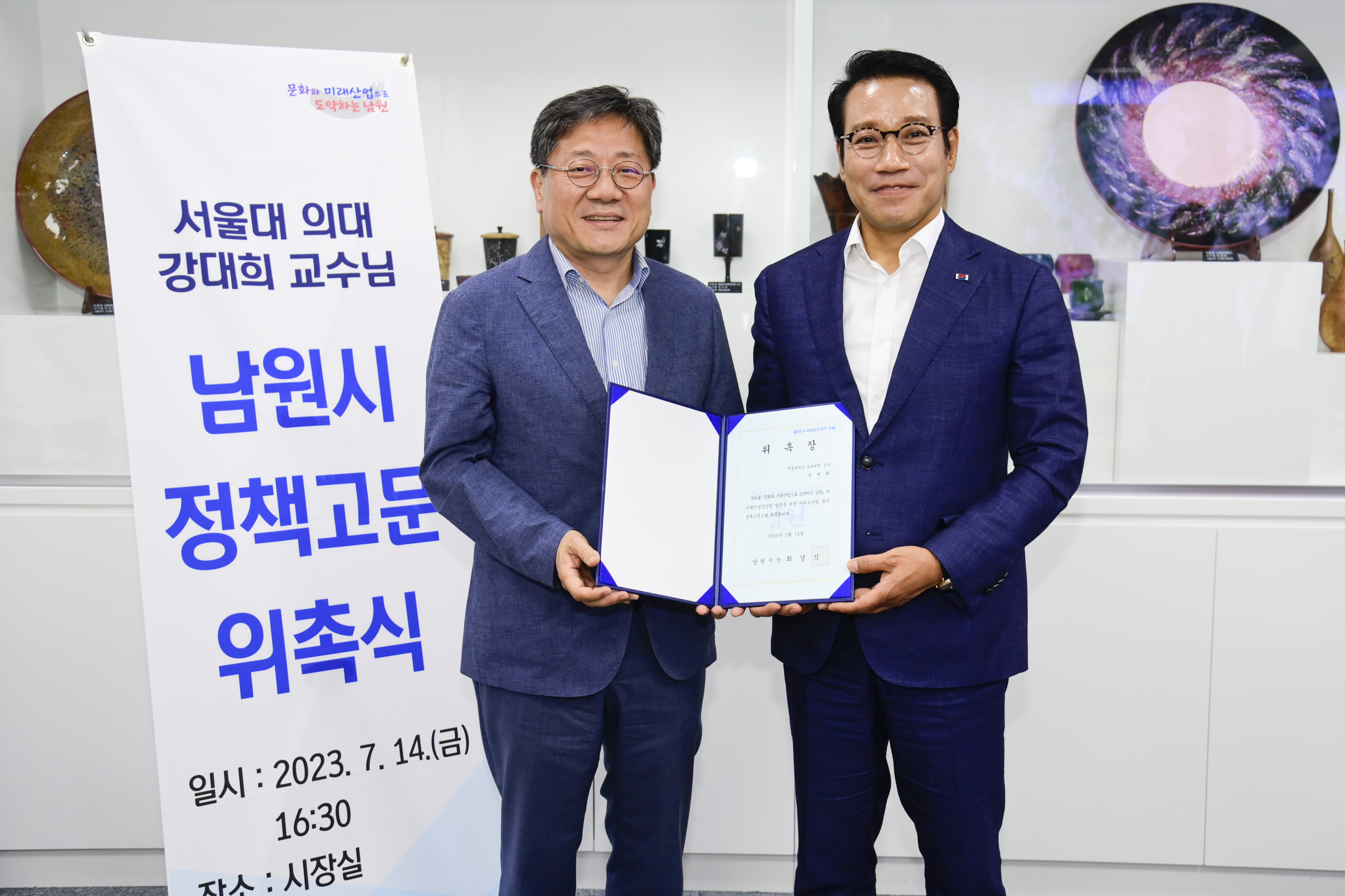 [남원=뉴전북] 남원시(시장 최경식)14일 정책고문 위촉식을 열어 강대희 서울대학교 의과대학 교수를 정책고문으로 위촉했다.