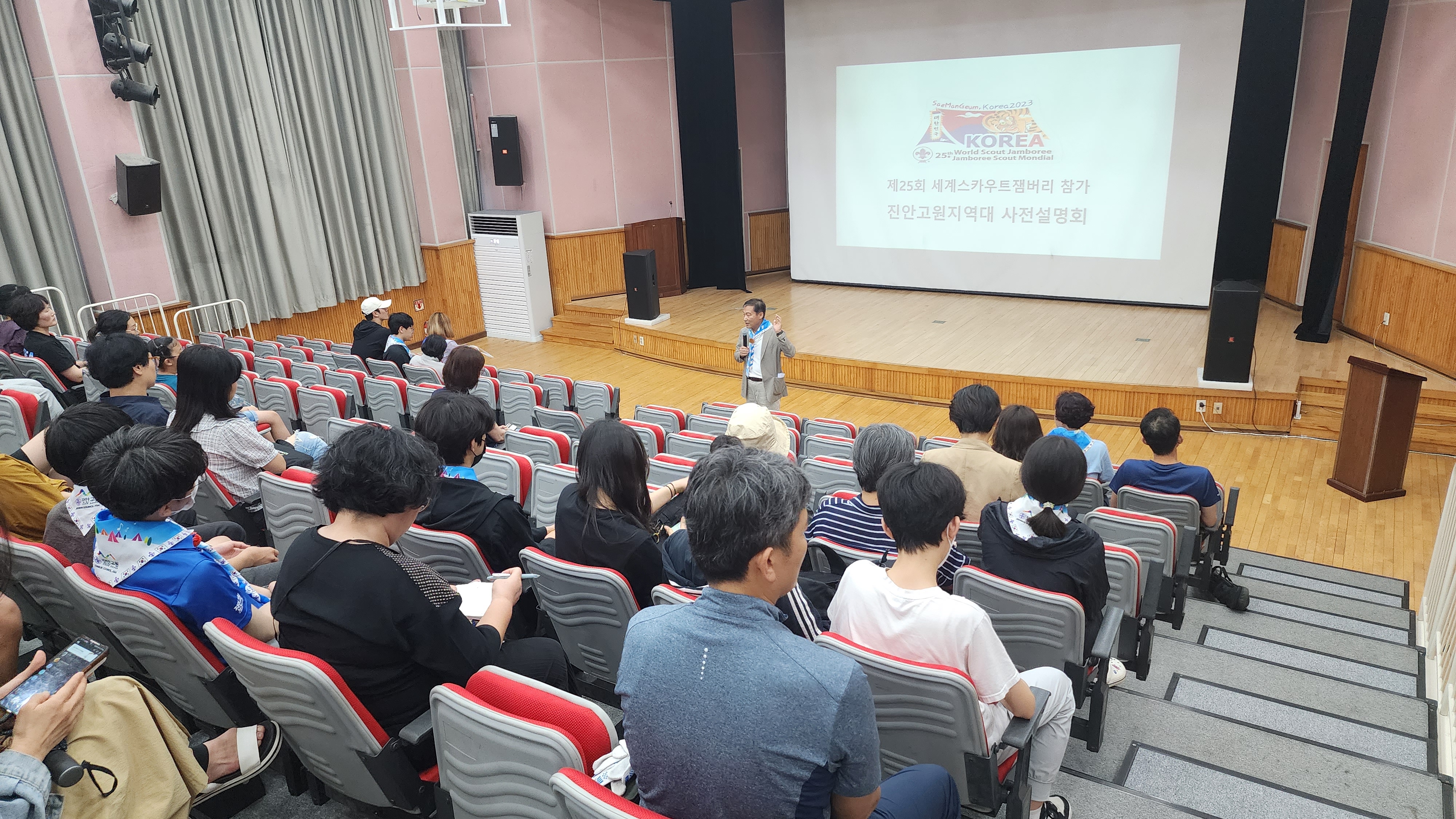 [진안=뉴전북]지난 7월 13일 청소년수련관에서 ‘세계스카우트 잼버리대회’에 참여하는 진안고원 지역대원들(32명) 및 지도자(4명)등 총 40여명이 참가한 가운데 발대식을 열고, 참여자 및 학부모를 대상으로 사전교육을 실시했다.