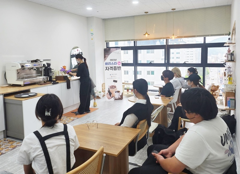 [정읍=뉴전북] 정읍시학교밖청소년지원센터 소속 학생 10명이 한국바리스타협회에서 주관하는 바리스타 2급 자격증 시험에 합격했다.