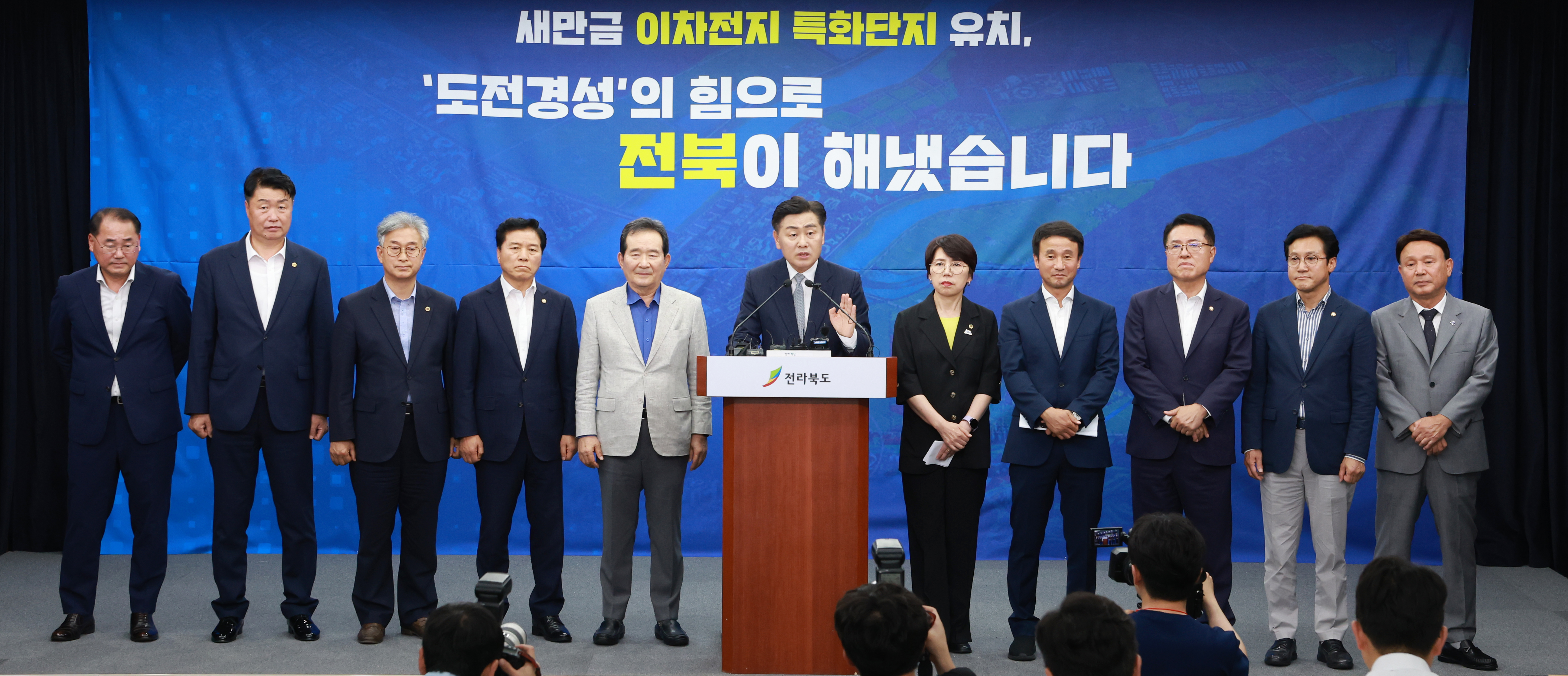 지난 20일 전북 새만금 이차전지 특화단지 지정 브리핑이 전북도청 기자회견실에서 열렸다. 이날 브리핑에는 김관영 도지사를 비롯해 정세균 전북 이차전지 특별위원회 명예위원장, 국주영은 전북도의회 의장, 한병도 더불어민주당 전북도당 위원장, 정운천‧신영대 국회의원, 김경안 새만금개발청장, 강임준 군산시장, 도의회 김동구 이차전지 특화단지 지정‧지원 특별위원장, 나인권 농산업경제위원장 등이 참석했다.