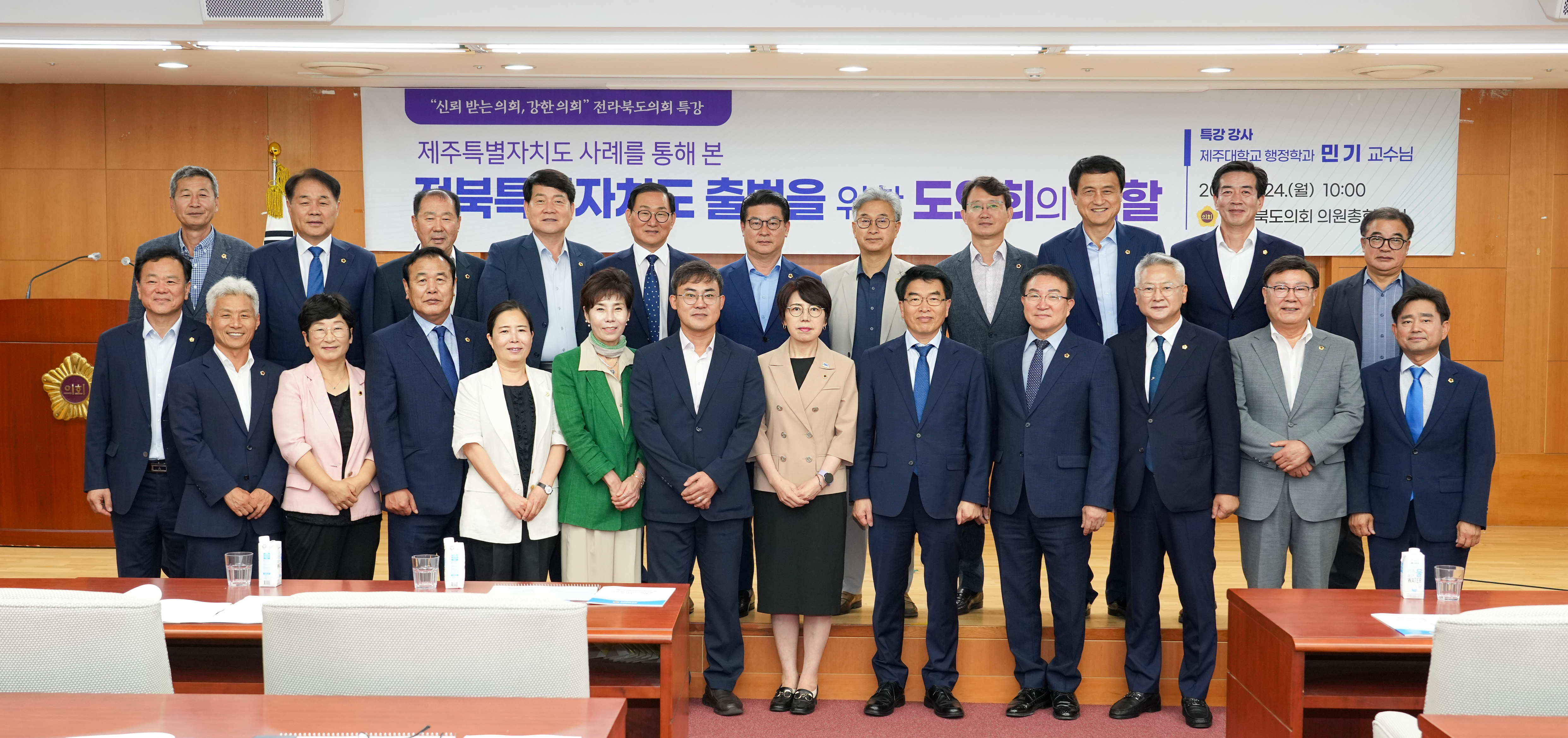 • - 전북도의회, 제주특별자치도 모델 설계한 민기 교수 초청 - 제주특별자치도 사례 통해 전북특별자치도 출범 위한 도의회 역할 모색