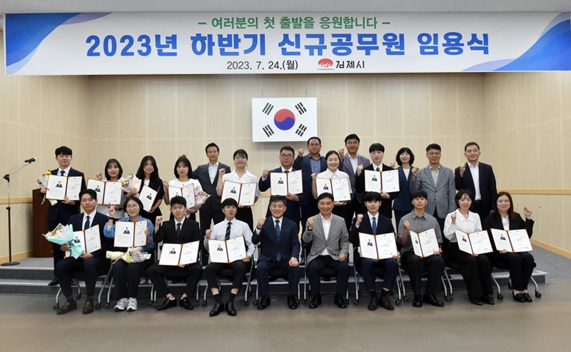 [김제=뉴전북] 김제가 24일 김제시청 대회의실에서 2023년도 하반기 실무수습 신규임용식을 개최했다.