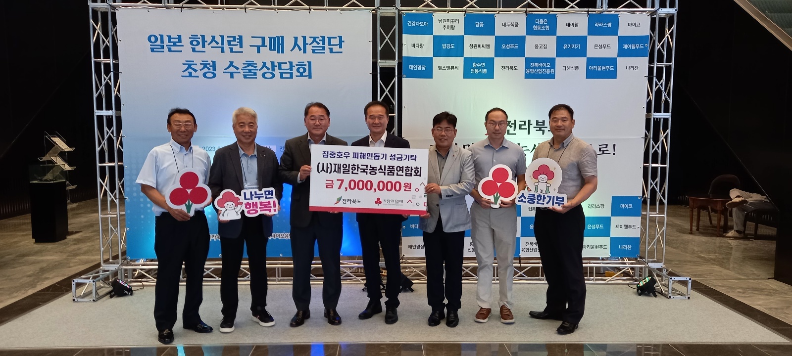 더불어 이날 수출상담회에 참석한 한식련 김규환 회장은 한식련 회원사들이 모금한 성금 700만 원을 전북 사회복지공동모금회에 전달했다.