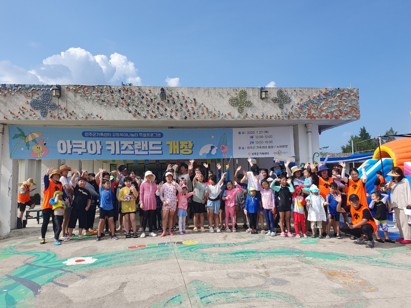 [완주=뉴전북] 완주군가족센터(센터장 김정은)가 대형 물놀이장으로 변신해 방학을 맞은 어린이와 부모에게 특별한 추억을 선물했다.
