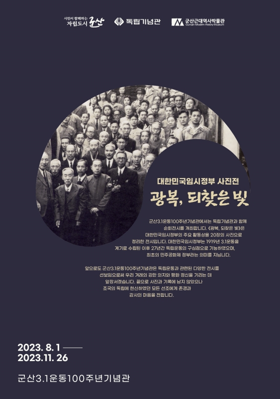 [군산=뉴전북] 군산3.1운동100주년기념관은 1일부터 ‘대한민국임시정부 사진전 –광복, 되찾은 빛-’전을 개최한다고 밝혔다.
