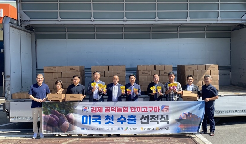 [김제=뉴전북] 김제 공덕농업협동조합(대표 문용수)의 한 끼 고구마가 지난 6월 태국 수출에 이어 3일 미국 첫 수출길에 올랐다.