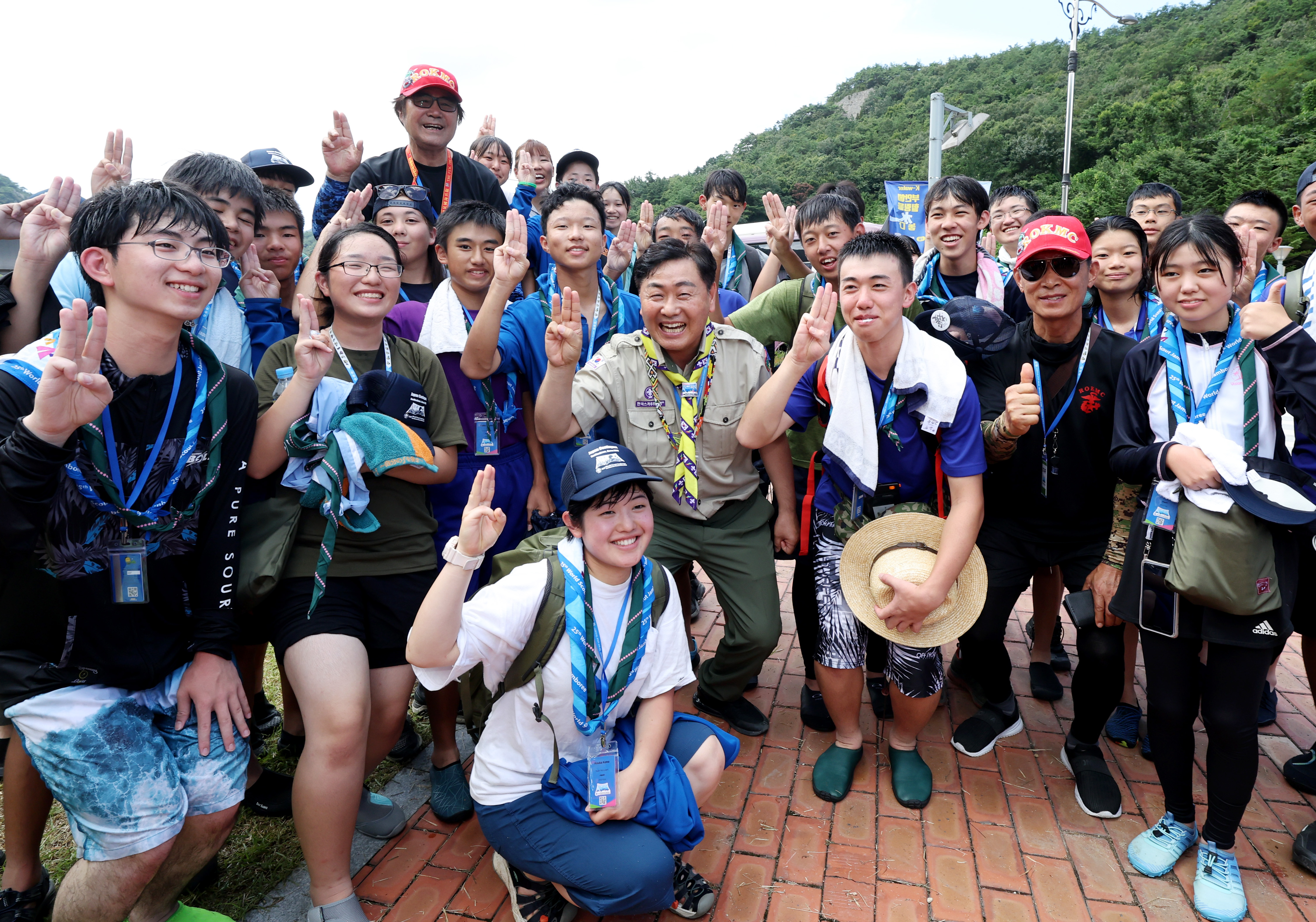 4일 김관영 도시자는 세계잼버리 스카우트 대원들이 시원한 물놀이를 즐길 수 있는 직소천 수상과정활동 프로그램 활동장에 방문해 물놀이 체험프로그램 운영 사항을 둘러보고 세계청소년들을 격려했다.