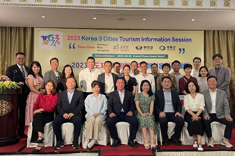 [무주=뉴전북] 무주군이 충북 영동군, 충남 금산군과 함께 지난 7월 31일부터 4일까지 나흘간 베트남 현지에서 3도3군 관광 홍보활동을 펼치고 왔다고 밝혔다.