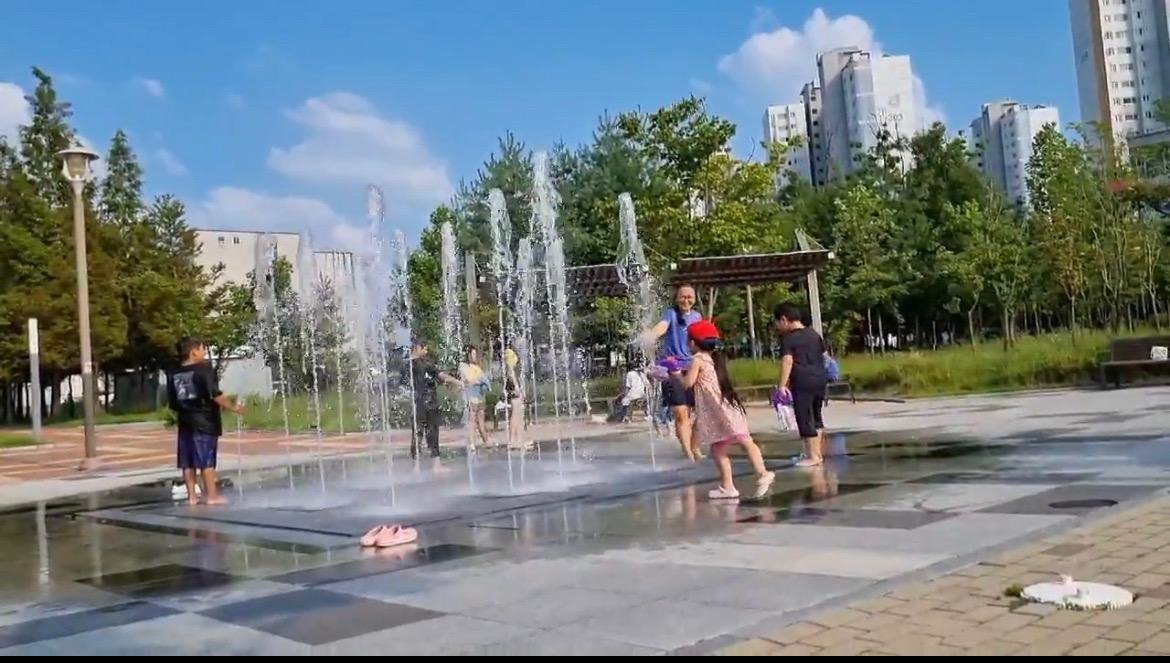[완주=뉴전북] 완주군 도시공원 내 바닥분수가 운영되면서 지역민들에게 휴식을 제공하고 있다.