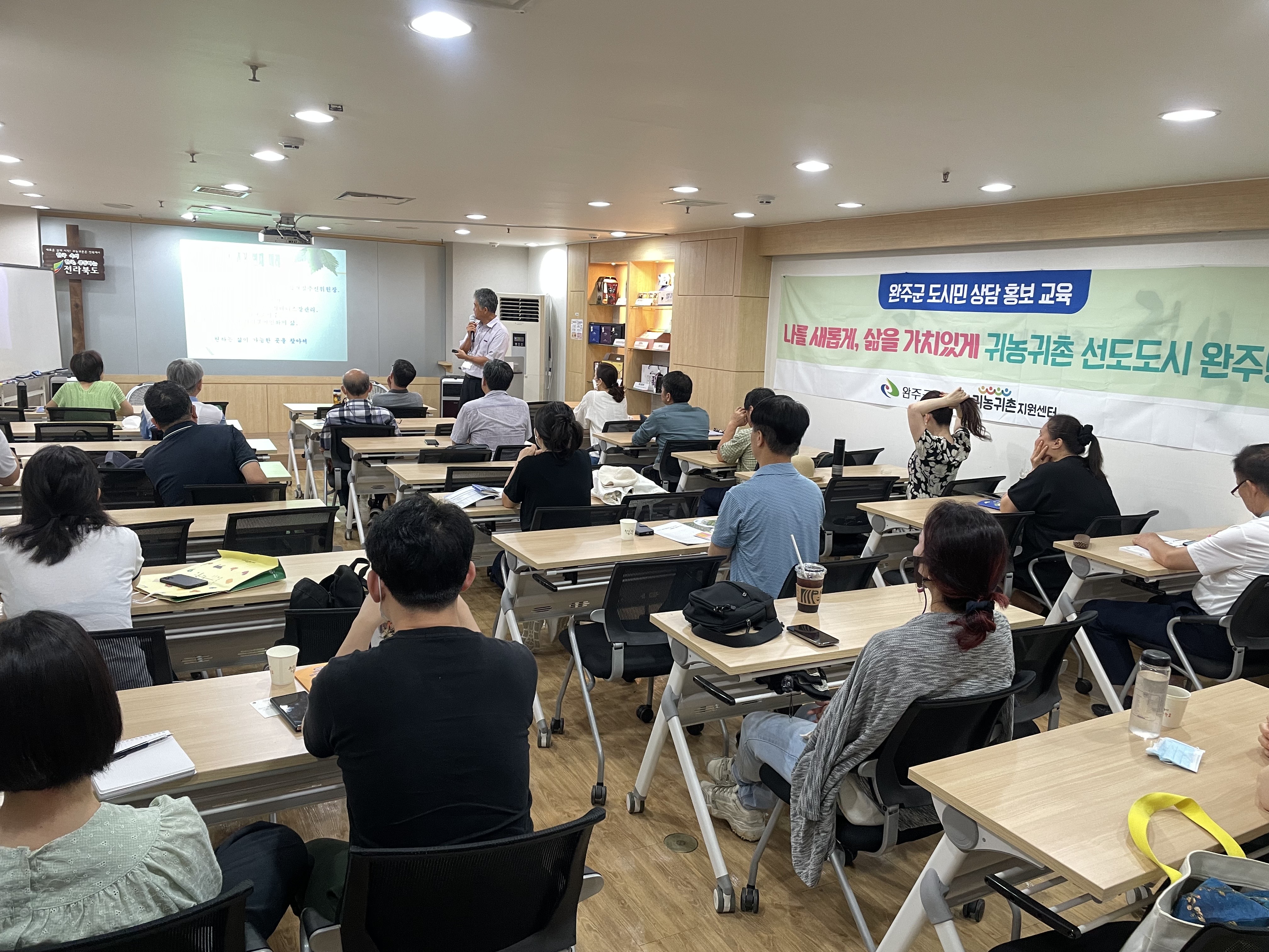 ‘나를 새롭게, 삶을 가치있게 귀농귀촌 선도도시 완주’를 주제로 진행된 이번 교육은 1:1 맞춤형 귀농귀촌 상담, 완주군 지원정책 및 귀농귀촌 사례를 전달했다.