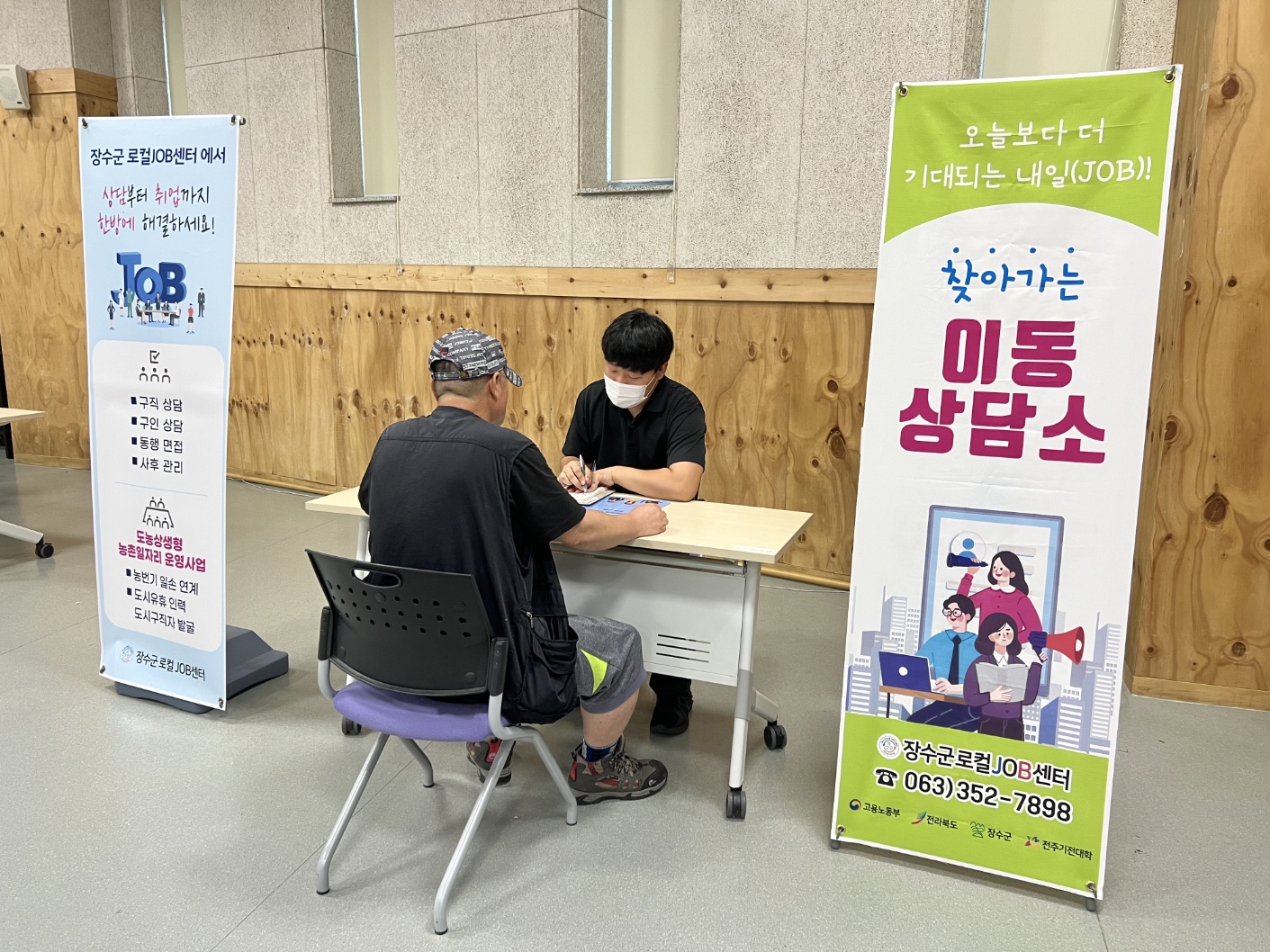 [장수=뉴전북]장수군 로컬 JOB 센터가 취업률 향상 및 안정적인 고용서비스 지원을 위해 지난 8월 1일부터 격주 화요일마다 장수군청 군민회관에서 주기적으로 찾아가는 일자리 이동상담소를 운영하고 있다.