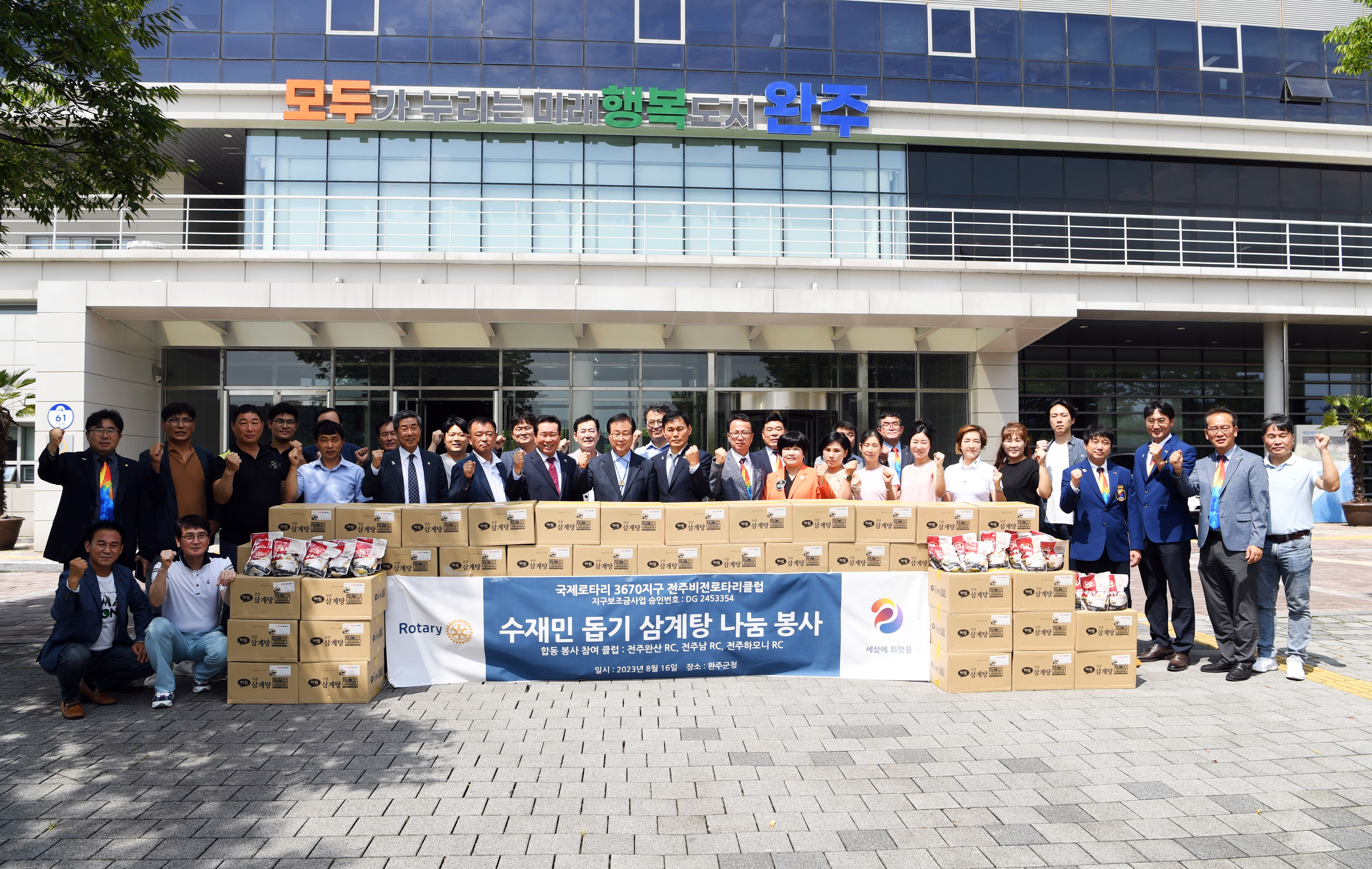 18일 완주군은 최근 국제로타리3670 전주비전로타리클럽이 관내 소외계층과 사회복지시설에 삼계탕 500인분을 전달해왔다고 밝혔다.