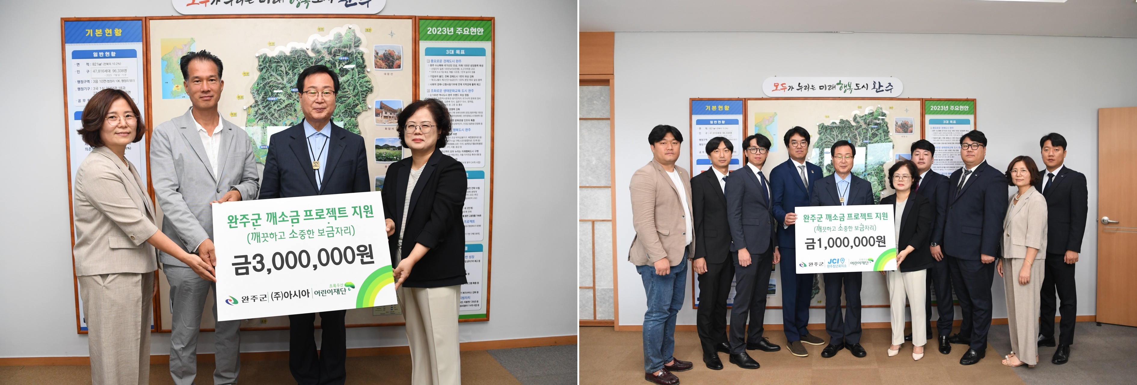 기탁식에서는 ㈜아시아가 300만원을 완주청년회의소는 100만원을 각각 기탁했다.