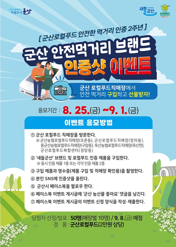 [군산=뉴전북] 군산시가 오는 25일부터 다음 달 1일까지 군산 안전먹거리 브랜드 SNS 인증샷 이벤트를 진행한다.