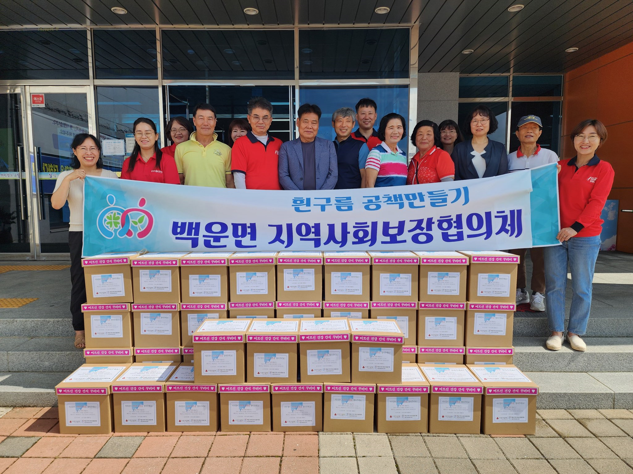 백운면 지역사회보장협의체 위원ㆍ 맞춤형 복지팀은 직접 포장한 간식꾸러미(영양보충식품, 죽, 두유, 과일, 기타 간식류 등 10종)를 어르신 40세대에 전달하고 건강과 안부를 물으며 이웃 돌봄을 실천하였다.
