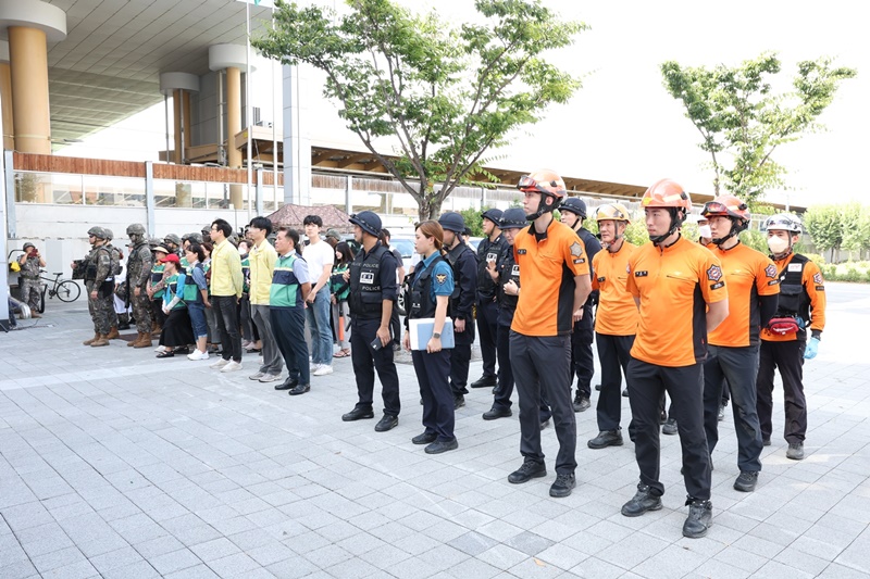 이날 훈련은 러·우크라이나 전쟁, 북한 핵 위협 등이 대두됨에 따라 재난상황 때 인적·물적 피해를 최소화하고 민·관·군·경이 신속한 초등조치를 통해 사태 수습능력을 배양하고자 마련됐다.