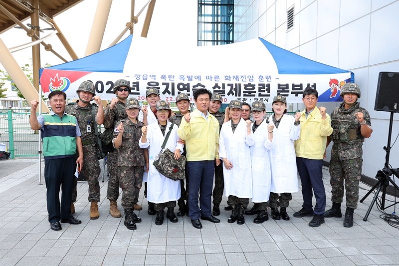[정읍=뉴전북] 정읍시는 지난 22일 오후 3시에 정읍역에서 제8098부대3대대, 정읍경찰서, 정읍소방서, 지원여성 민방위대 등 5개 기관ㆍ단체에서 훈련요원 110명이 참석해 2023년 을지연습 실제훈련을 진행했다.