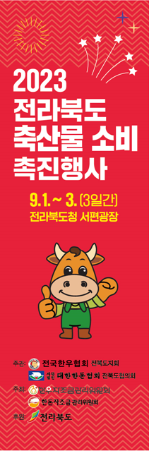 [도정=뉴전북] 전북도는 추석 명절을 맞아 생산자협회(한우, 한돈, 낙농)와 함께 9월1일부터 3일까지 3일간 도청 서편광장에서 도내 축산물 소비 활성화를 위한 2023년 축산물 소비촉진 할인판매 행사를 개최한다고 밝혔다.