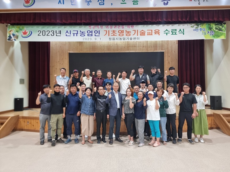 [정읍=뉴전북] 정읍시농업기술센터는 지난 1일 신규농업인(귀농귀촌인) 27명을 대상으로 신규농업인 기초영농기술교육 수료식을 성황리에 마쳤다.