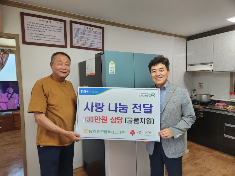 이번 행사는 노후화 된 생활 가전이 잘 작동되지 않아 어려움을 겪고 있다는 지역 어르신들의 사연을 접하게 돼 따뜻한 마음을 전달하고자 실시됐으며, 전주완주시군지부는 130만 원 상당의 냉장고를 전달했다.