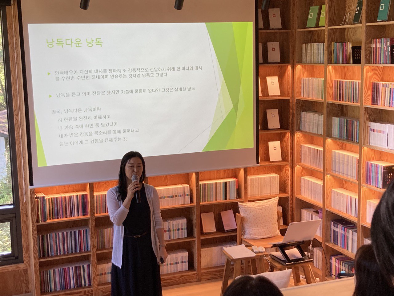[전주=뉴전북] 전주시는 8일 학산숲속시집도서관에서 서문은 공연시낭송가를 초청해 ‘시 낭독 교육’ 특강을 열었다.