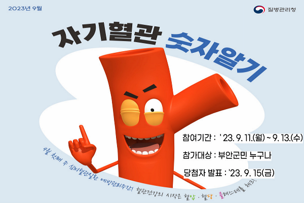 [부안=뉴전북] 부안군은 심뇌혈관질환 예방관리주간을 맞아 9월 한달 간 '자기혈관 숫자알기'라는 슬로건으로 캠페인을 실시한다고 밝혔다.