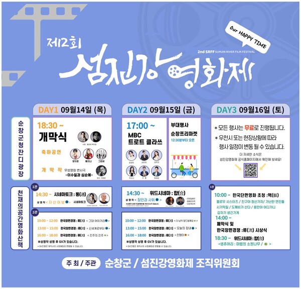 [순창=뉴전북] 제2회 섬진강 영화제가 순창군청 잔디광장에서 14일 오후 6시 30분 개막식을 시작으로 3일간의 여정을 시작한다.