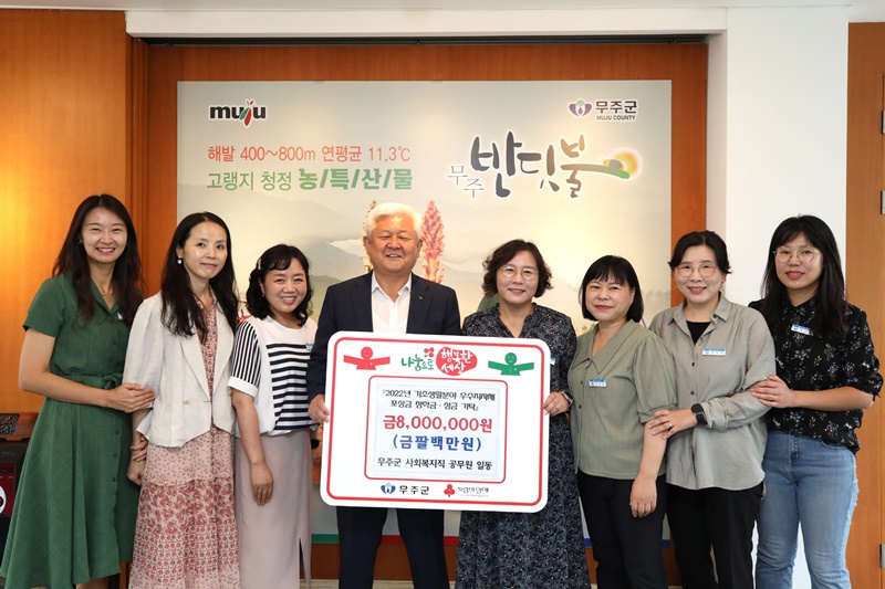 성금은 2022년 기초생활 보장 분야 사업평가에서 무주군이 우수 지자체(보건복지부장관 표창)로 선정이 되면서 받은 포상금 8백만 원 전액으로, 무주군은 기초생활보장 사업 실적이 우수한 지자체를 발굴 · 시상하는 이번 평가에서 제도 운영실적 및 업무협조 노력도 등 모든 부분에서 호평을 받았다.