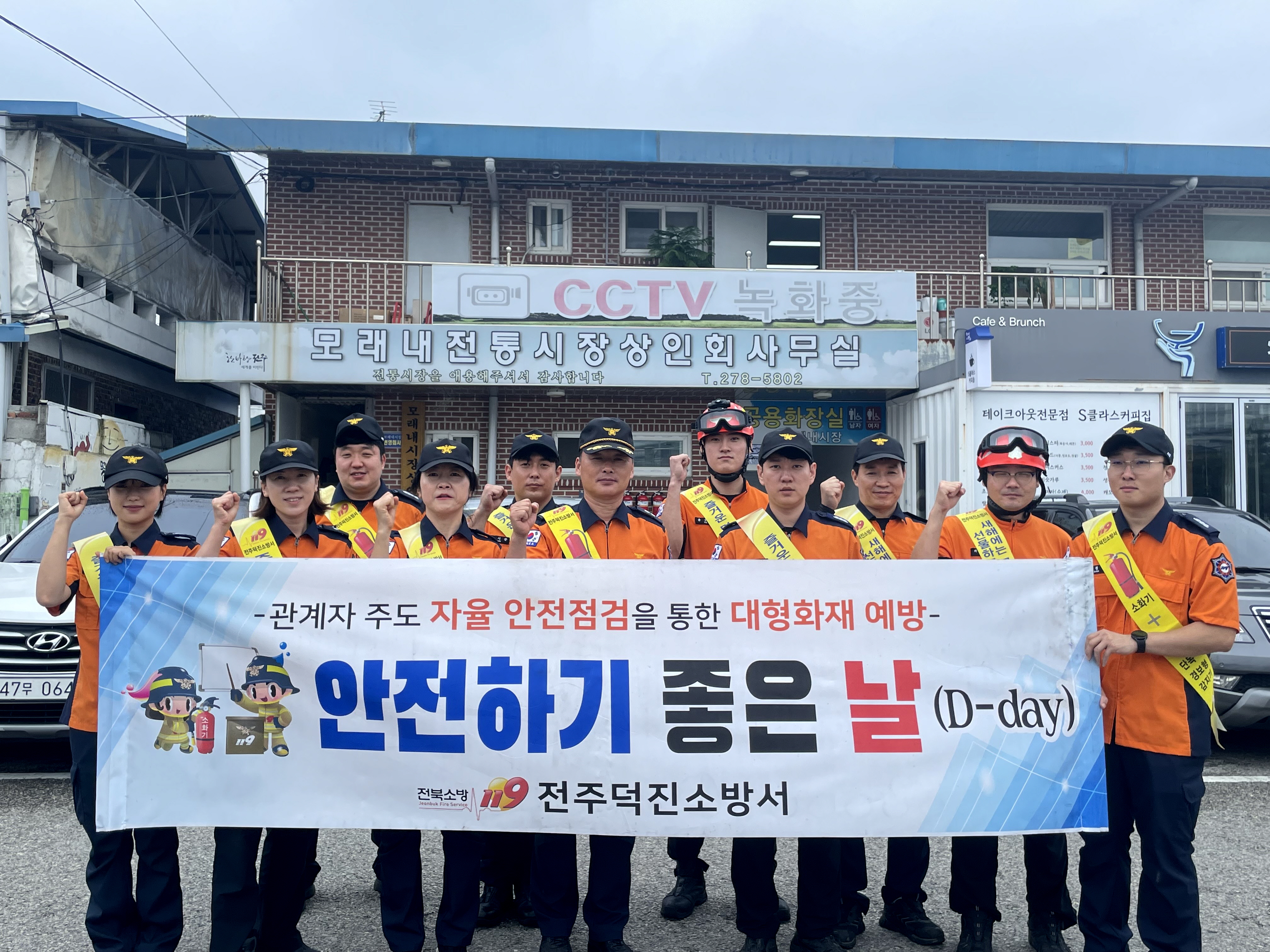 [사회=뉴전북] 전주덕진소방서(서장 강동일)가 지난 13일 오후 덕진구 모래내 시장에서 화재예방 자율 안전점검 문화 정착을 위한 ‘안전하기 좋은 날’ 캠페인을 추진했다.
