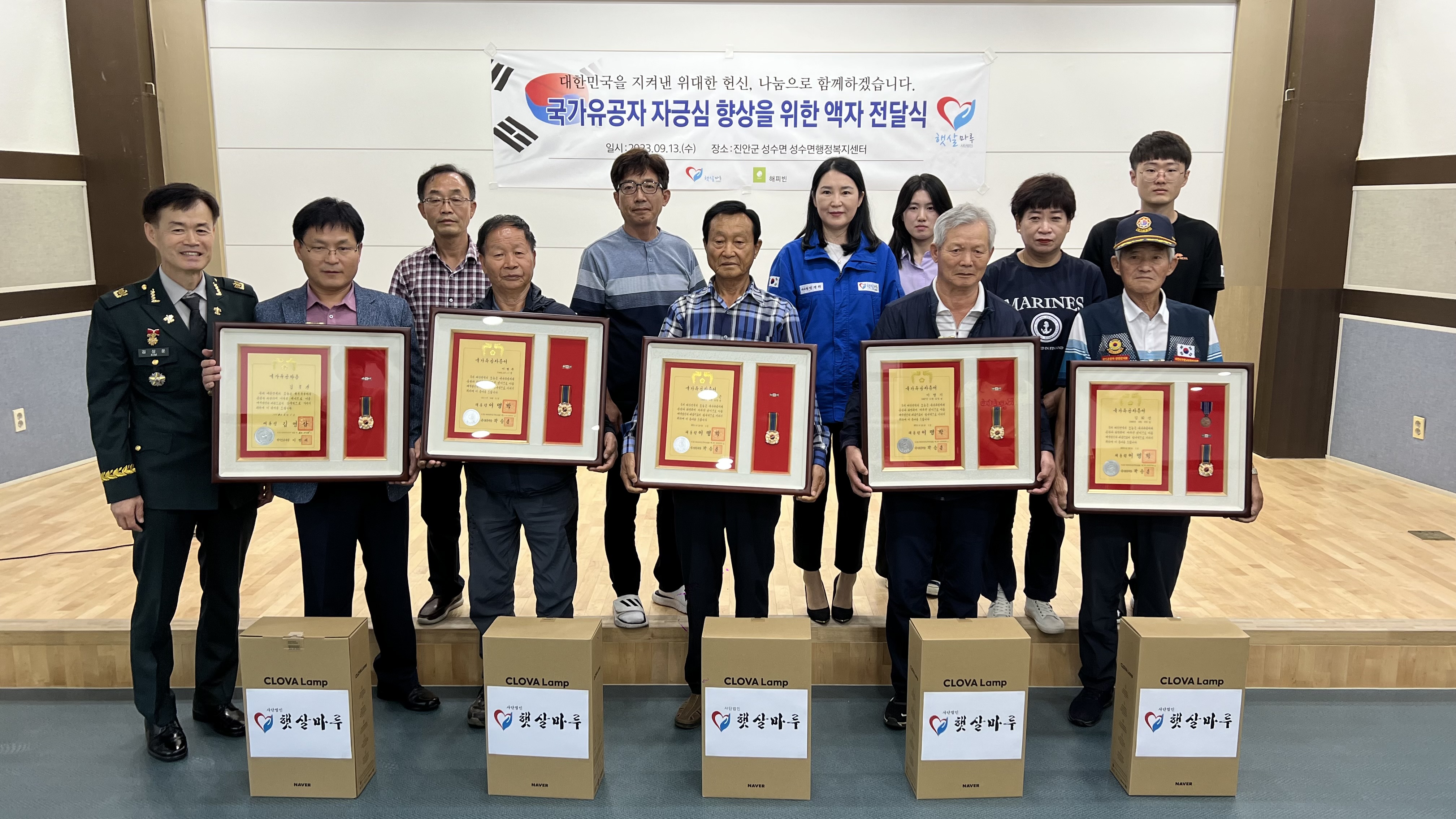 최용주 성수면장은 “국가유공자분들께 의미 있고 소중한 증서를 액자로 제작·전달해 준 햇살마루에 감사하다”며 “나라를 위해 헌신하신 국가유공자분들에게 다시 한번 진심 어린 존경의 마음을 전하며, 앞으로 면정을 펼치는데 이분들의 뜻을 되새기며 살기 좋은 성수면을 만드는 데 더 큰 노력을 기울이겠다”라고 말했다.