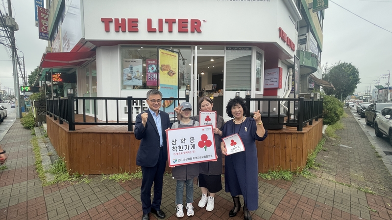 [군산=뉴전북] 군산시 삼학동 지역사회보장협의체(공동위원장 신명옥)가 지난 13일 더리터삼학점(대표 김다연)을 방문해 착한가게 현판을 전달했다고 밝혔다.