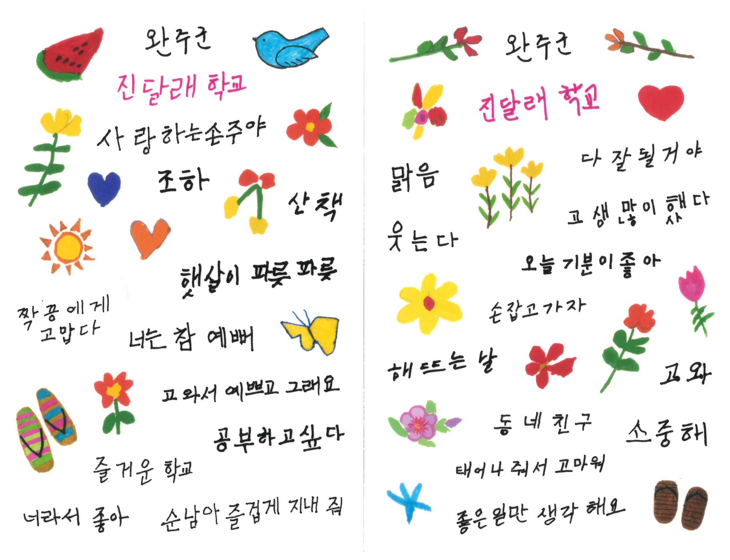 [완주=뉴전북] 완주군 진달래학교 어르신들이 그린 글과 그림이 스티커 ‘굿즈’로 탄생했다.