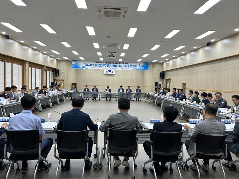 [김제=뉴전북] 김제시는 지난 14일, 2024년도 본예산 편성을 앞두고 시청 3층 대회의실에서 정성주 시장 주재로 ‘2024년 주요업무계획 보고회’를 개최했다.