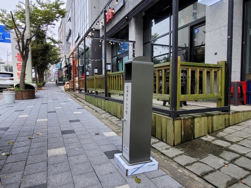 [김제=뉴전북] 김제시가 담배꽁초 투기로 몸살을 앓고 있는 식당 및 상가 밀집지역에 담배꽁초 전용 수거함 10대를 시범 설치했다고 18일 밝혔다.