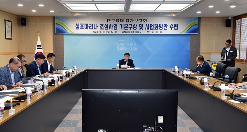 [김제=뉴전북] 김제시는 지난 18일 정성주 김제시장을 비롯한 관계 공무원과 분야별 전문가 등이 참석한 가운데 `심포 마리나 조성사업 기본구상 및 사업화방안 수립 용역`에 대한 중간보고회를 개최했다고 밝혔다.