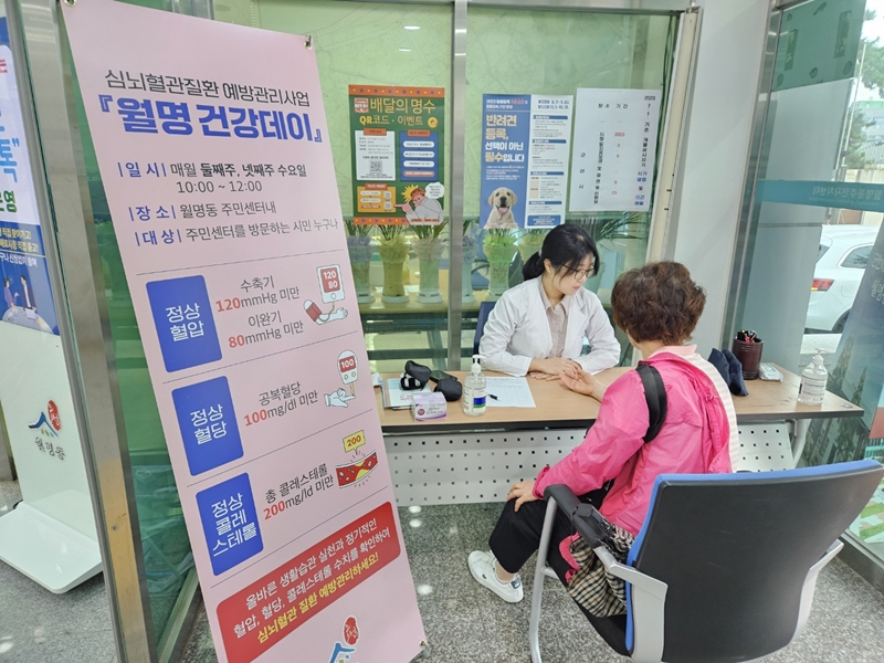 ‘월명건강데이’는 이달부터 매월 둘째주 넷째주 수요일 10시부터 12시까지 주민센터를 방문하는 주민을 대상으로 혈압·혈당·콜레스테롤 기초검진을 측정하고 검사 결과에 따라 건강 상담을 진행한다.