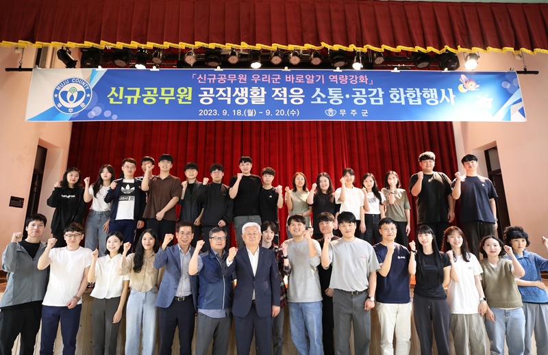 [무주=뉴전북] 무주군이 신규공무원들의 공직사회 적응과 행정서비스 질 향상을 위해 지난 18일부터 20일까지 2박 3일간 군민의 집과 반디랜드에서 “우리 군 바로 알기 역량강화” 교육을 실시했다고 밝혔다.