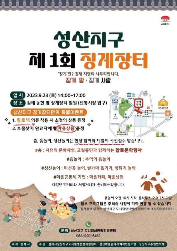 이날 행사는 성산지구 도시재생사업의 일환으로 전통시장 활성화를 위해서 기획했으며, 김제시의 역사문화를 체험하는 축제와 같이 진행돼 재미를 더할 예정이다.