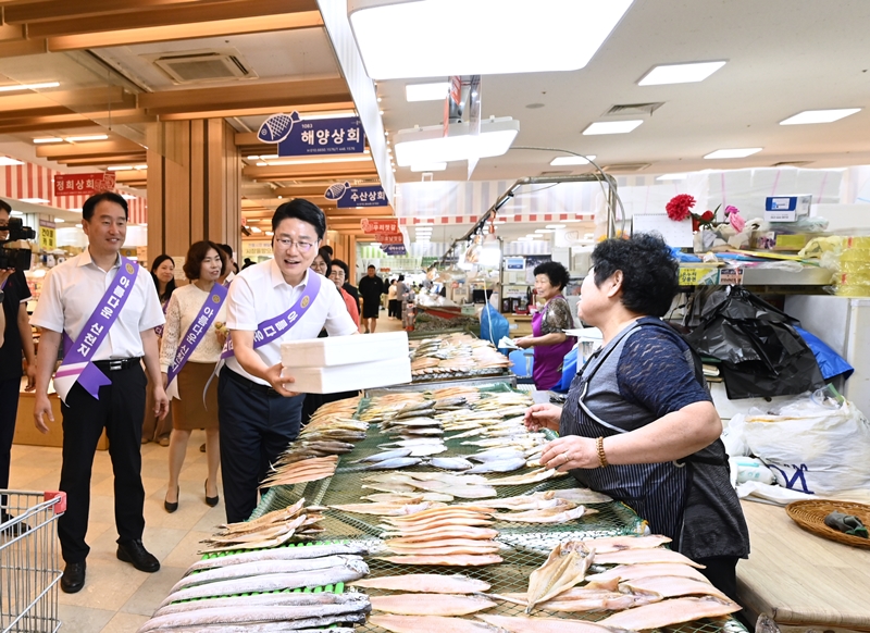 [군산=뉴전북] 추석 대목을 앞두고 급등한 물가에 시민과 상인이 어려움을 겪는 가운데 지난 21일 오전 전북 군산 공설시장에 웃음꽃이 활짝 피어났다.