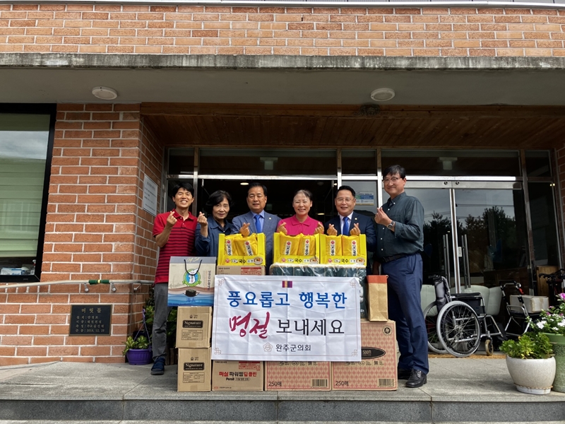 [완주=뉴전북] 완주군의회(의장 서남용)가 25일 추석을 앞두고 관내 사회복지시설을 방문해 위문품을 전달하고, 시설운영의 고충을 듣는 시간을 가졌다.