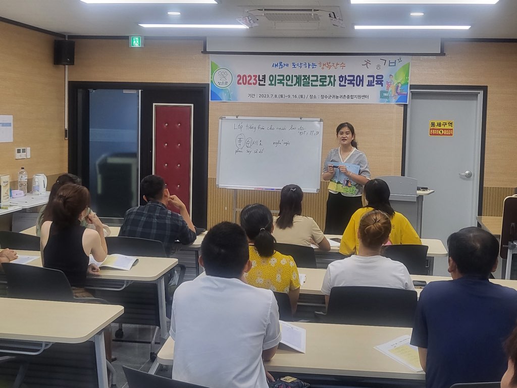한국어교육은 농가에 배치돼 일하고 있는 외국인계절근로자들을 대상으로 한국문화에 대한 기본교육, 영농현장에서 많이 사용하는 용어, 실생활에 필요한 생활언어에 대한 교육, 장수지역 소개 홍보 등 다양한 프로그램으로 진행됐다.