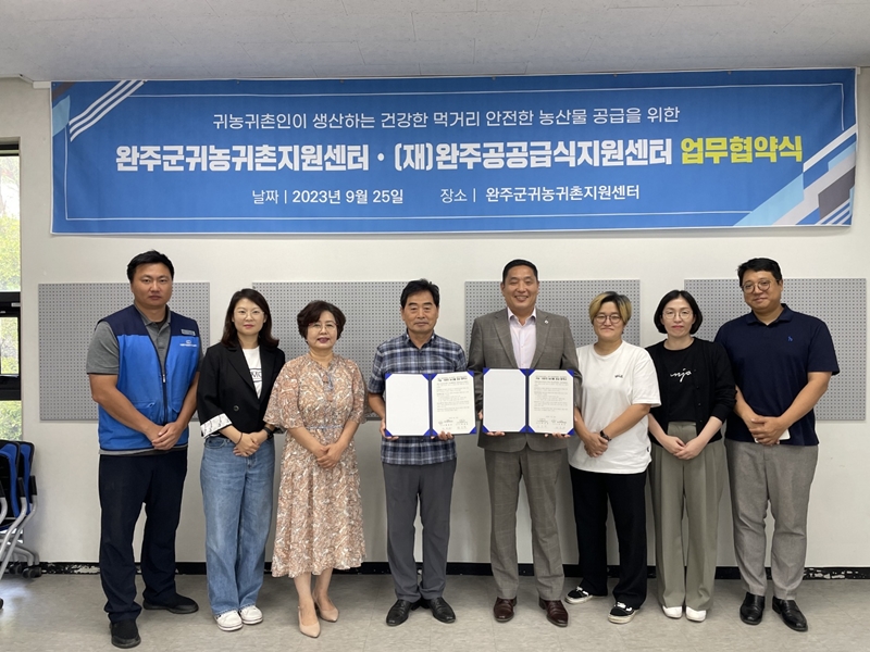 27일 완주군은 최근 완주군 귀농귀촌지원센터(귀농귀촌협의회)와 (재)완주공공급식센터 간 업무협약을 체결했다고 밝혔다.