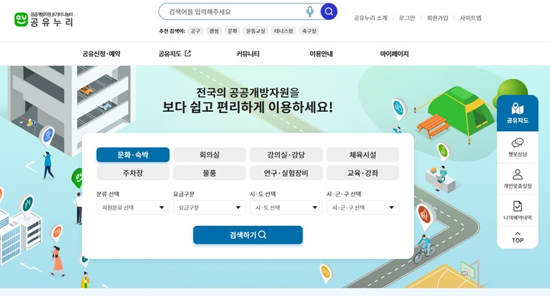 ‘공유누리 서비스’란 중앙행정기관과 지방자치단체, 공공기관 등이 개방하는 시설과 물품 등을 시민 누구나 편리하고 쉽게 이용할 수 있는 시스템이다.