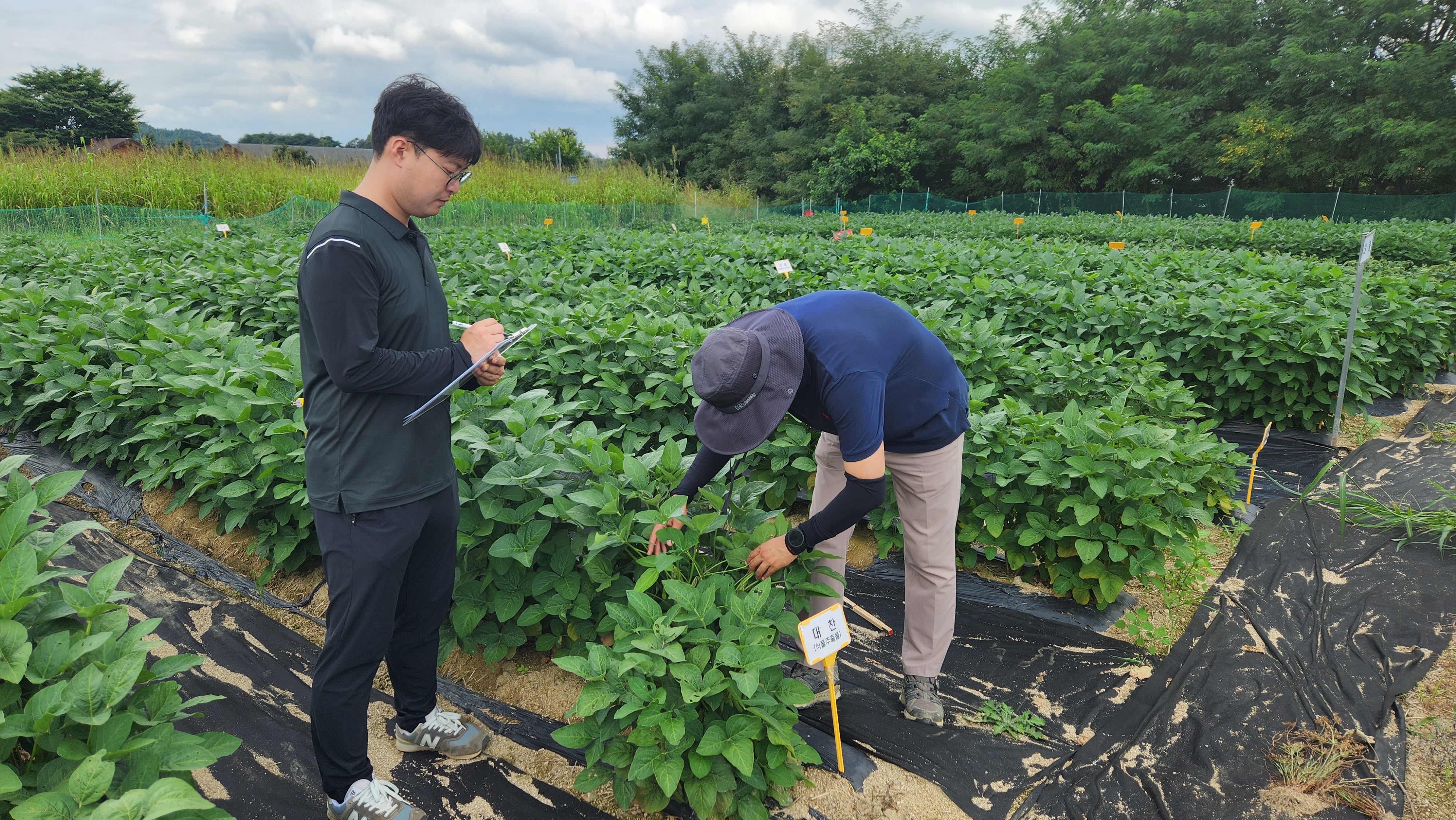 [진안=뉴전북]진안군은 유기농업자재를 이용해 농약사용량을 줄이면서 친환경 재배에 적합한 콩 품종을 선발하기 위힌 2년차 현장실증에 나서고 있다.
